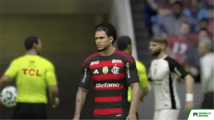 Um dos momentos mais hipnotizantes da primeira partida não vinha apenas do toque na bola, mas daquilo que revestia os jogadores. Os uniformes, repaginados com texturas de alta qualidade e modelos inspirados nas temporadas 2024/25 ou 2025/26, criavam um impacto visual imediato. Era como se o jogo ganhasse uma nova pele. O Fatal Revolution conseguia algo raro: fazia você acreditar que estava jogando um título recém-lançado. Os detalhes nos tecidos, os escudos reluzentes, as cores vivas e os patchs das competições compunham uma estética digna dos gramados mais modernos. Era impossível não sentir o coração acelerar ao perceber que o passado agora batia em ritmo de futuro.