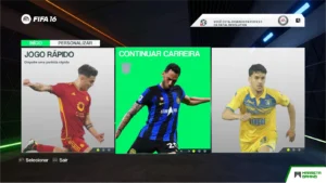 A interface do Fatal Revolution reforça a modernização do FIFA 16 logo nos menus iniciais. O design atualizado, as cores equilibradas e a tipografia moderna criam uma primeira impressão forte. O jogador sente que está diante de algo atual, bem construído e alinhado com padrões visuais modernos. Essa renovação de interface contribui para a sensação de continuidade. O jogo não parece antigo em nenhum momento. Tudo funciona como uma experiência integrada, onde estética e funcionalidade caminham juntas.